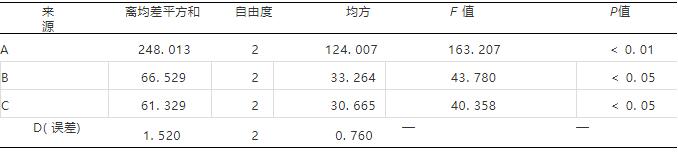 結(jié)果見(jiàn)表2,方差分析見(jiàn)表3